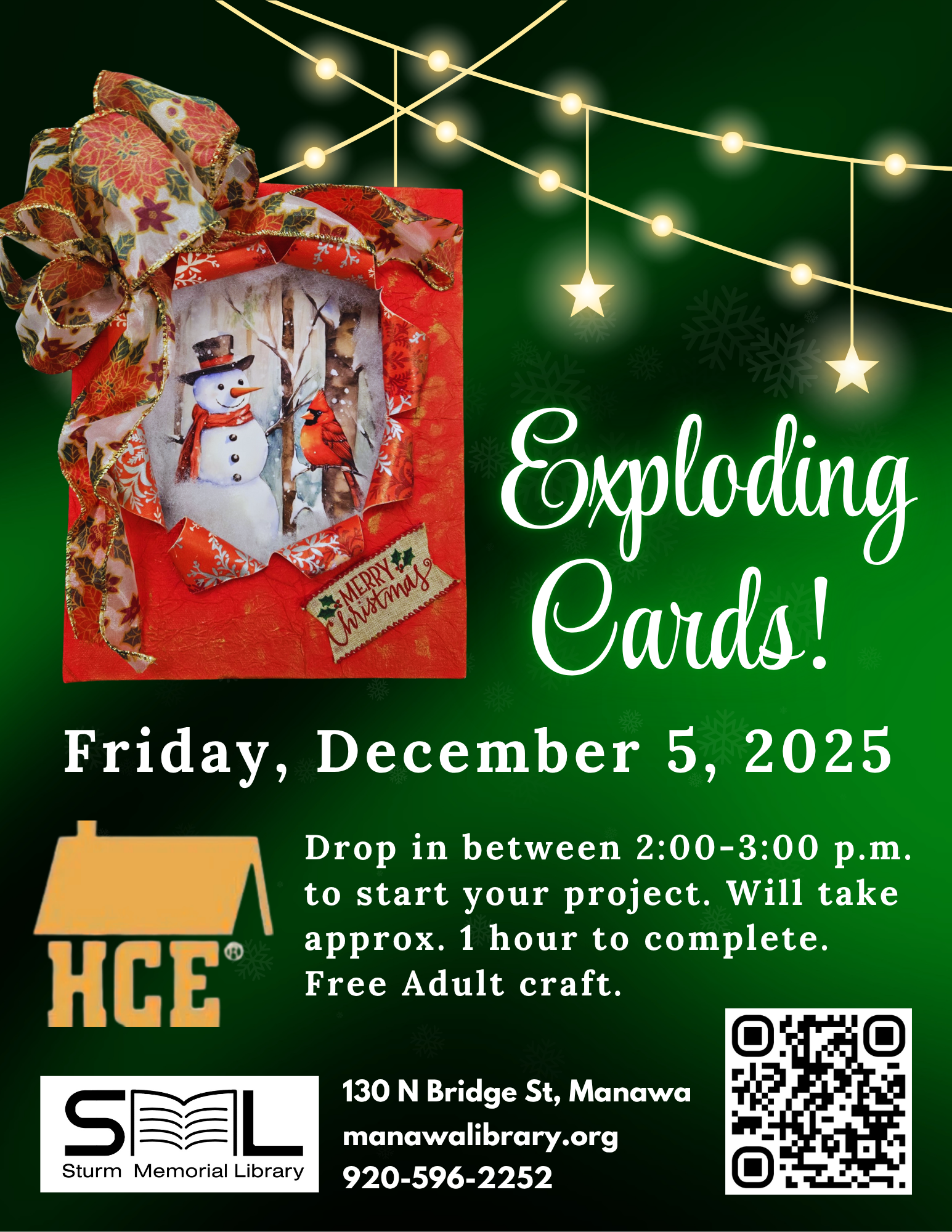 Drop in anytime between 2:00 and 3:00 p.m. and plan to spend approximately an hour to complete your project.