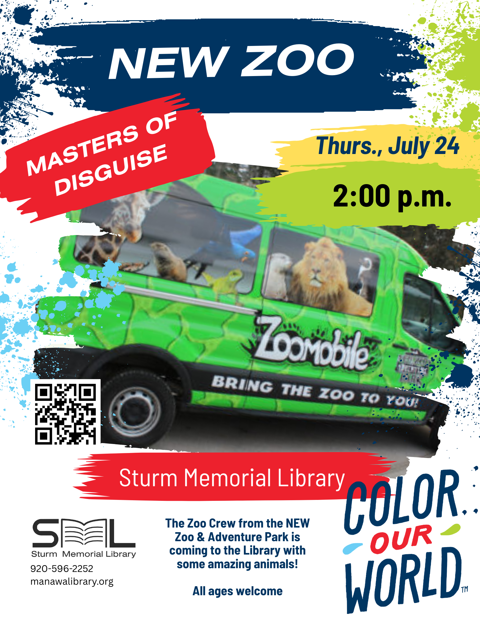 The Zoo Crew from the NEW Zoo & Adventure Park is coming with some amazing animals! We’ll learn how the animals “color our world,” using colors and camouflage to hide, show off, and communicate, all to help them survive in the wild.