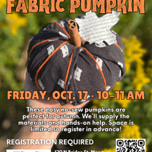 Join us for a fun adult crafting session where we’ll be making some adorable no-sew pumpkins—perfect for adding a cozy touch to your autumn decor! We’ll provide all the materials you’ll need and offer plenty of hands-on assistance. Remember, space is limited, so don’t forget to register in advance. We can’t wait to see you […]