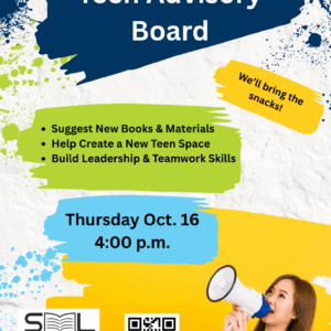 Ready to build your leadership and teamwork skills while making a difference in your community? Join the Library Teen Advisory Board! Contact us to learn how to get involved. Grades 7+, no registration is required.